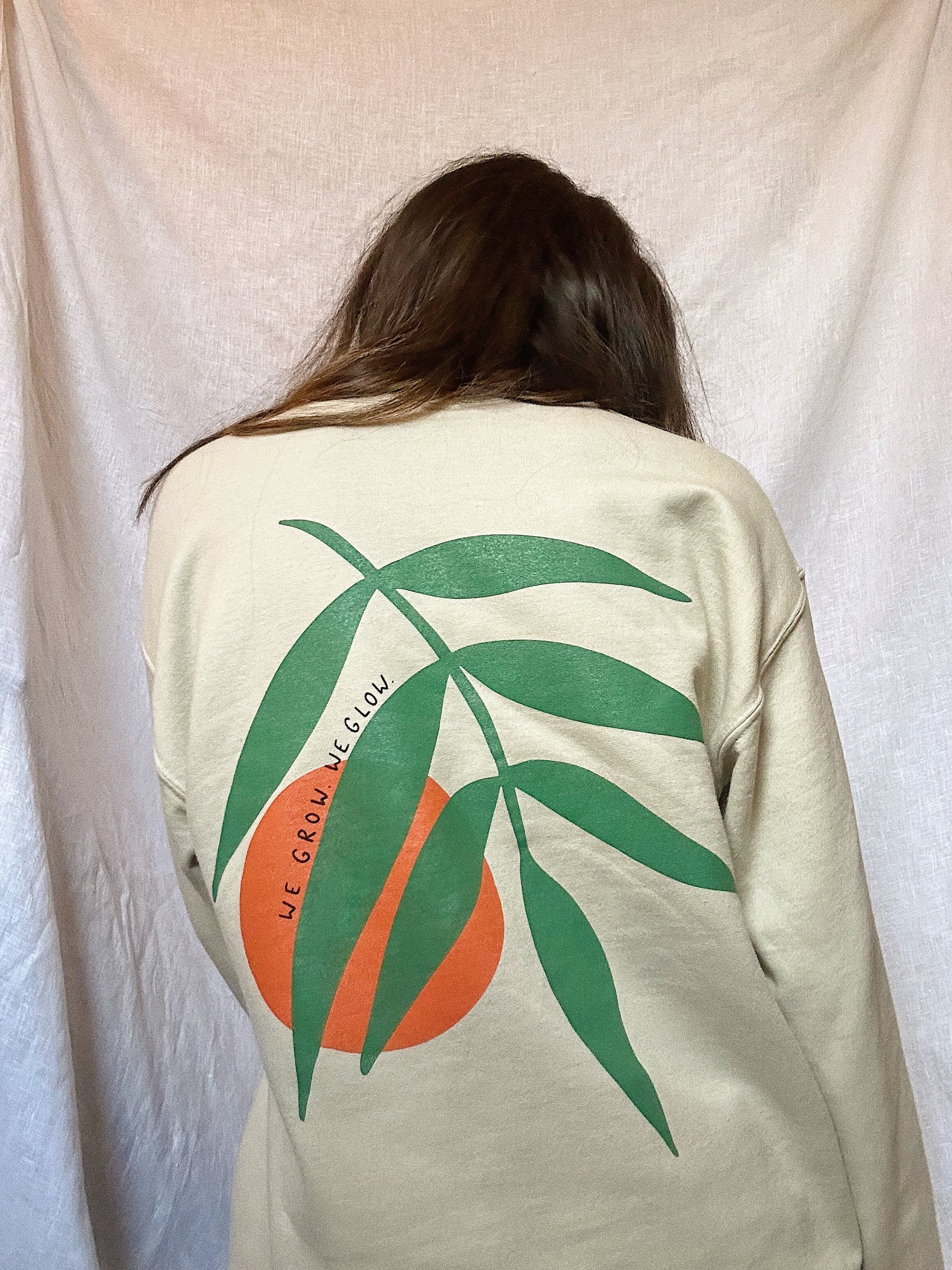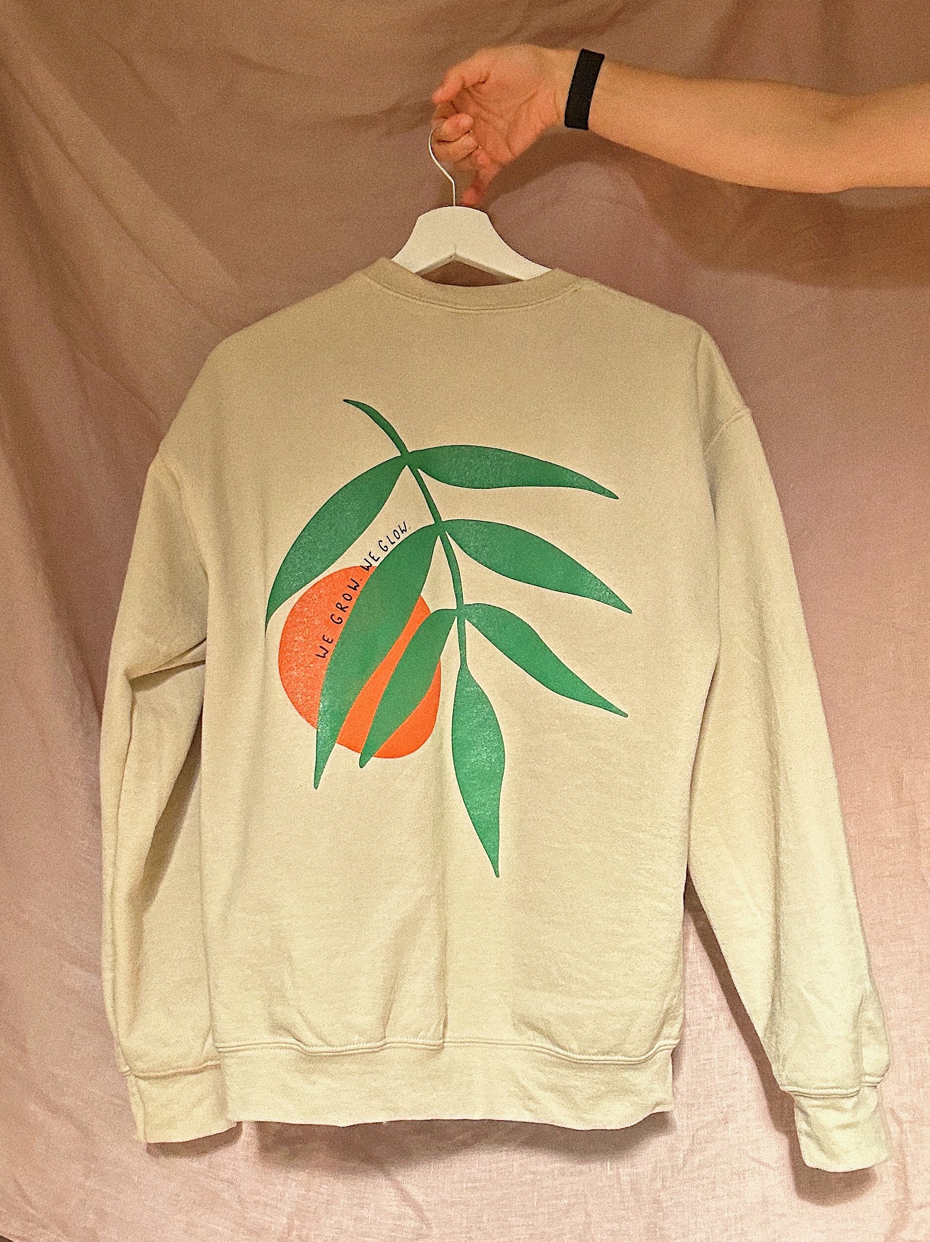 We grow, We glow. A cute, cosy concept that just fitted well on an equally cosy and cute jumper. A pop of colour to brighten your day with a positive message.