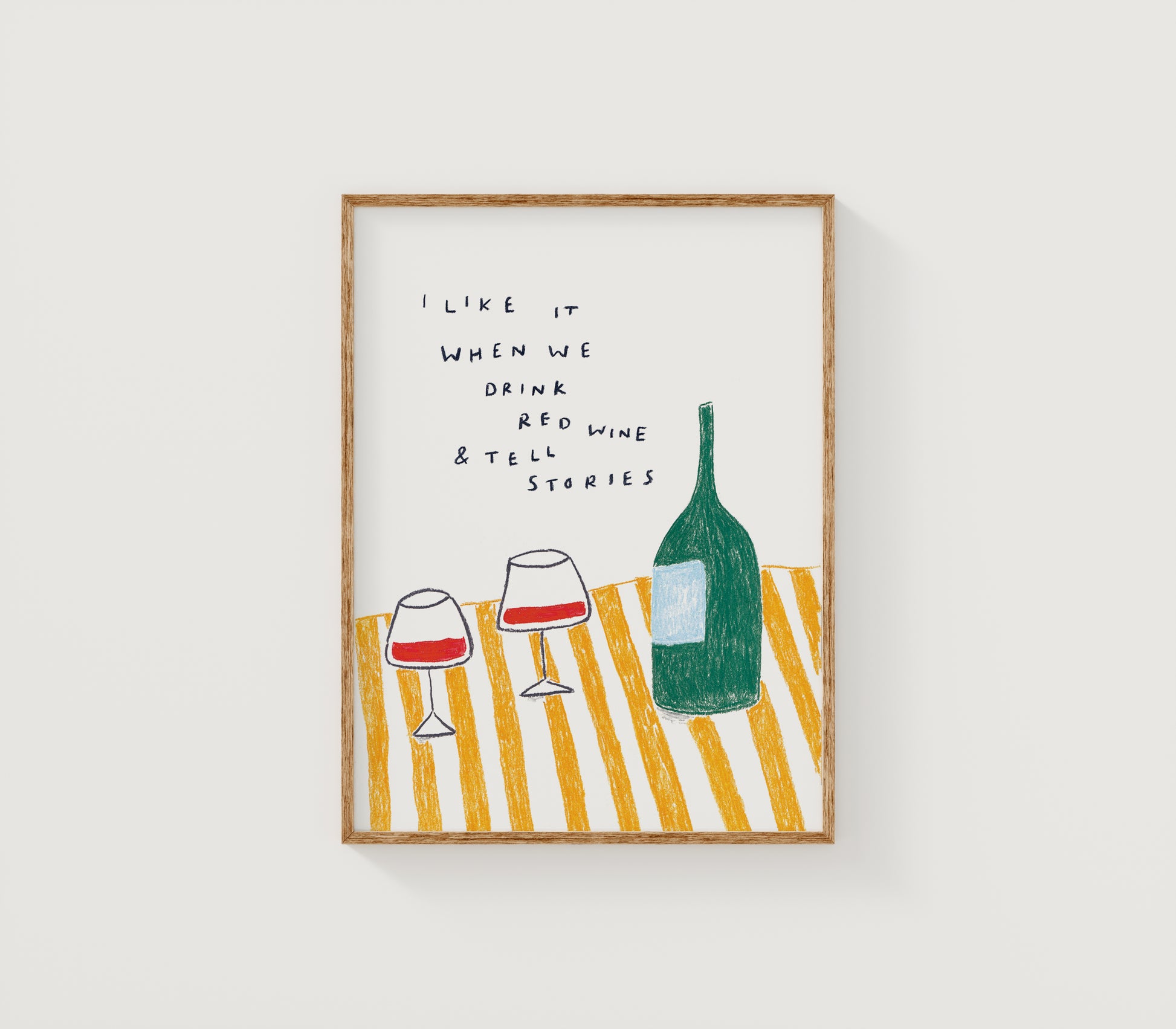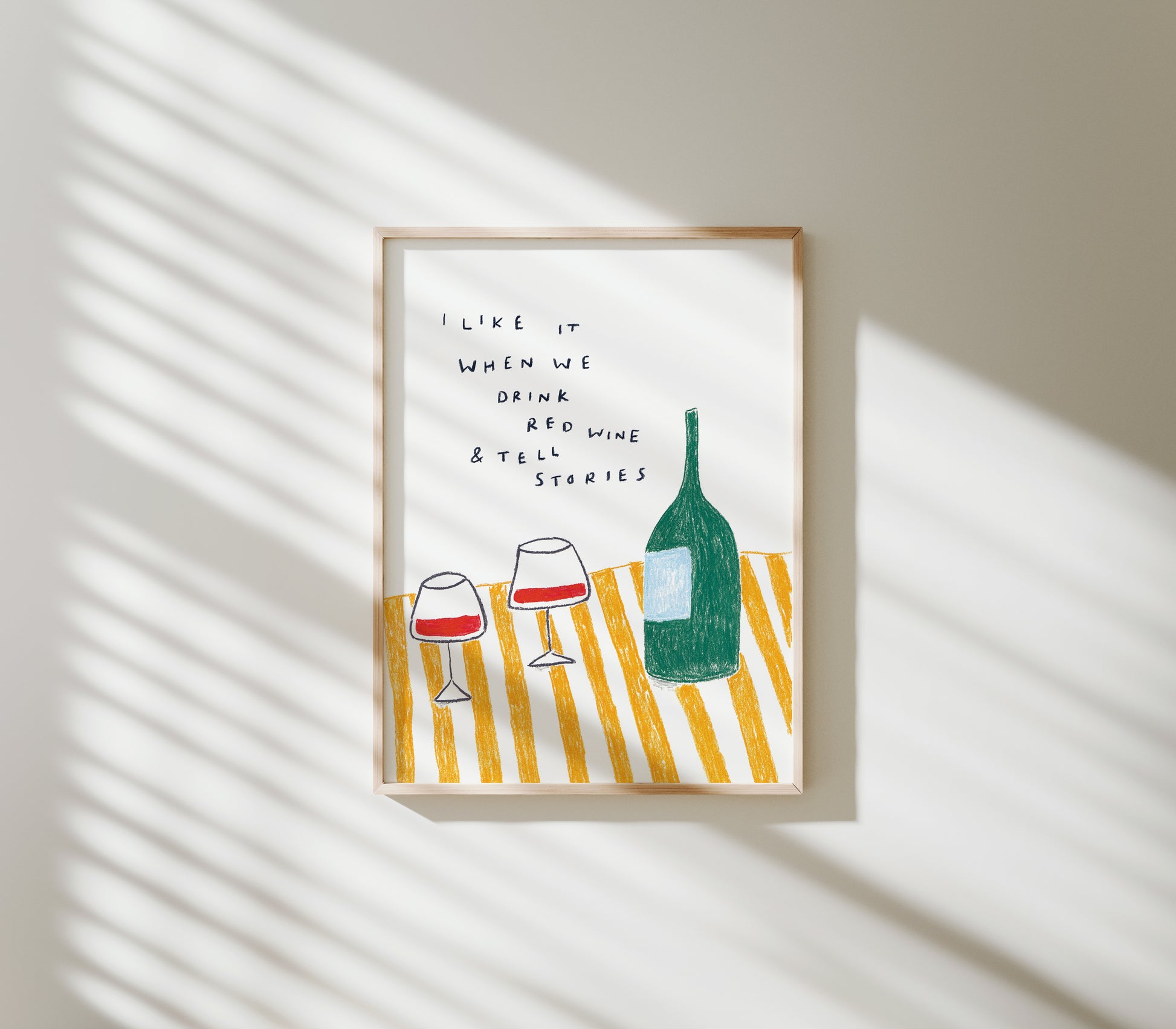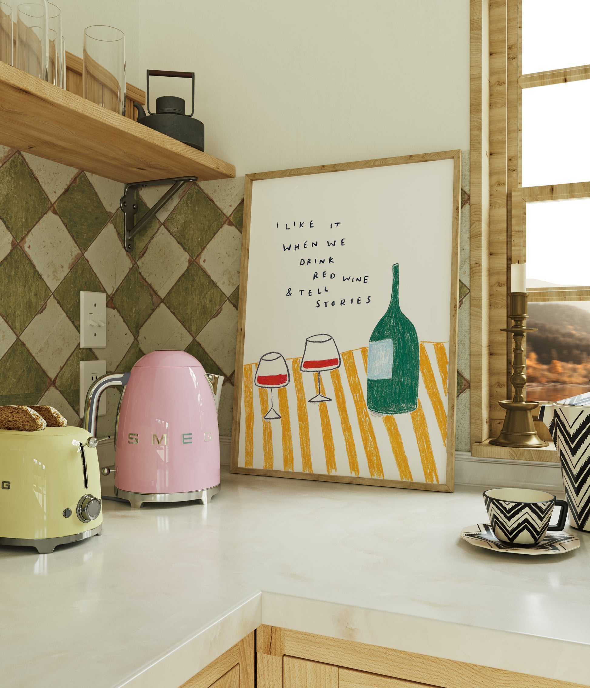 Picture this: you and your loved ones, gathered around, sharing a bottle of red and catching up. It's those simple, heartfelt moments that mean the most. This print is deigned to capture and reflect that sense of warmth and connection, celebrating the joy found in life's everyday gatherings.