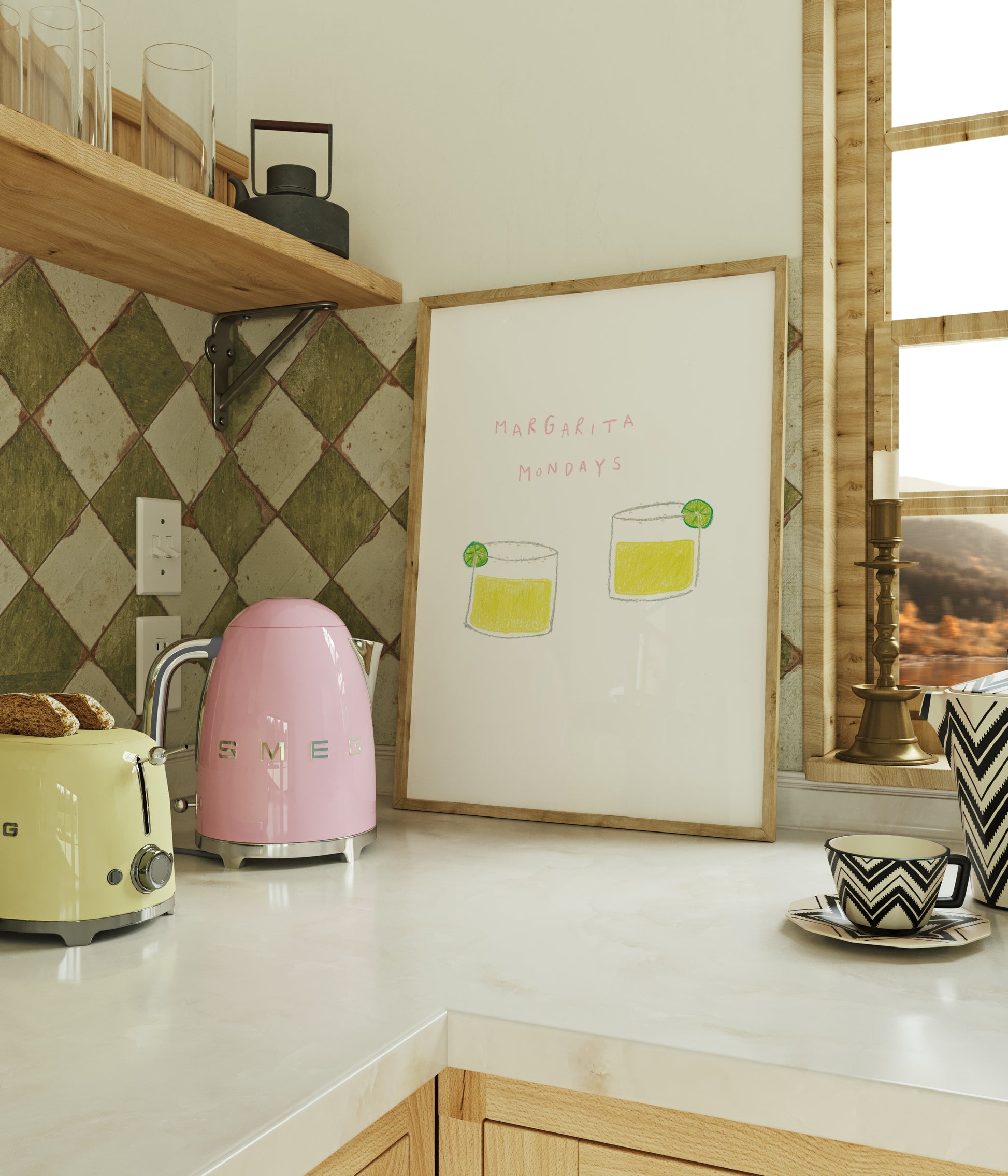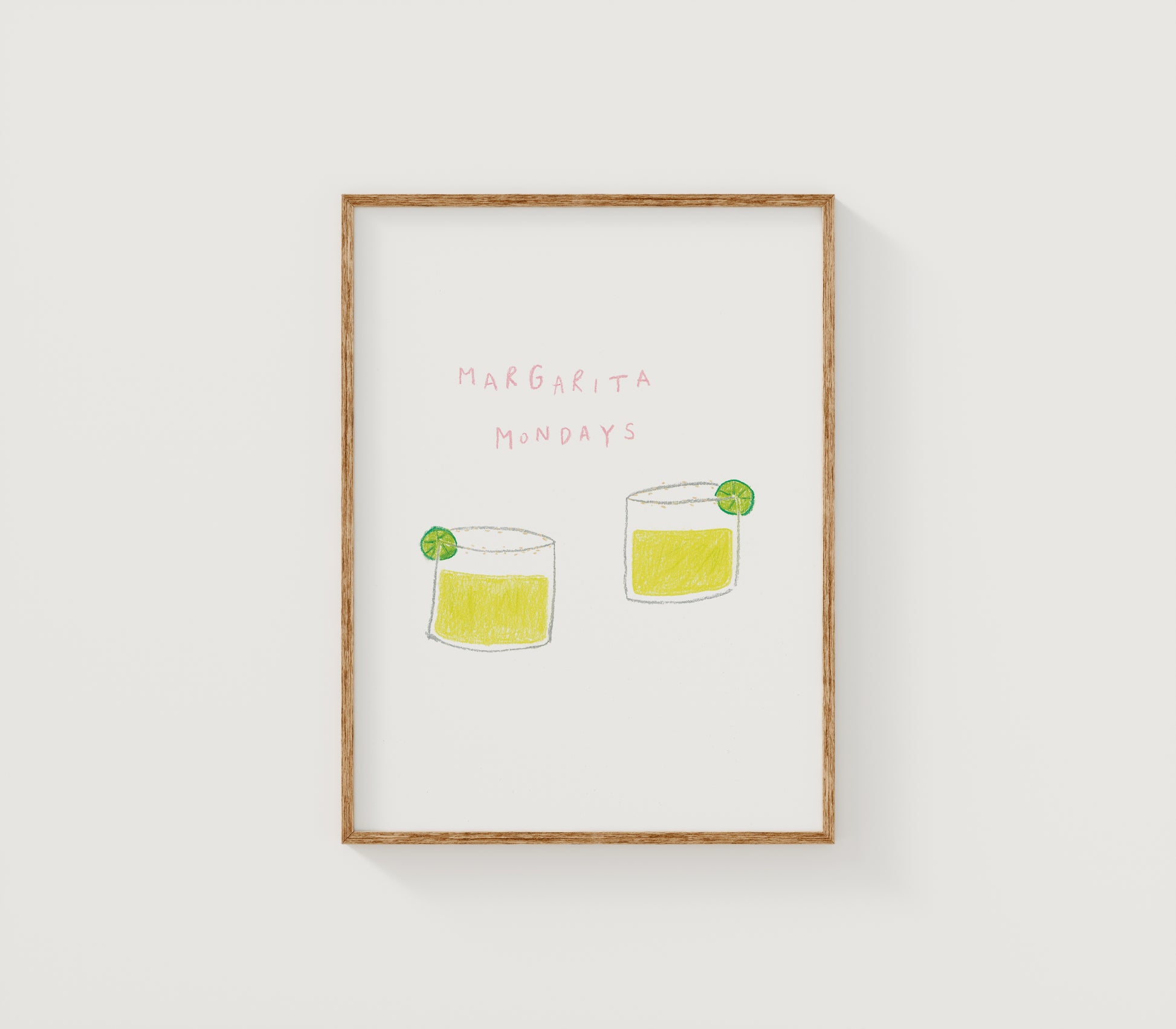 This print is a celebration of the ultimate treat – a margarita, made even better on a Monday! Inspired by those well-earned post-work moments when your local bar has them on offer, it’s a playful nod to finding joy in life’s little rituals. Perfect for adding a splash of fun and personality to your kitchen, home bar, or any space that could use a little midweek pick-me-up. Cheers to making every Monday a little bit brighter!