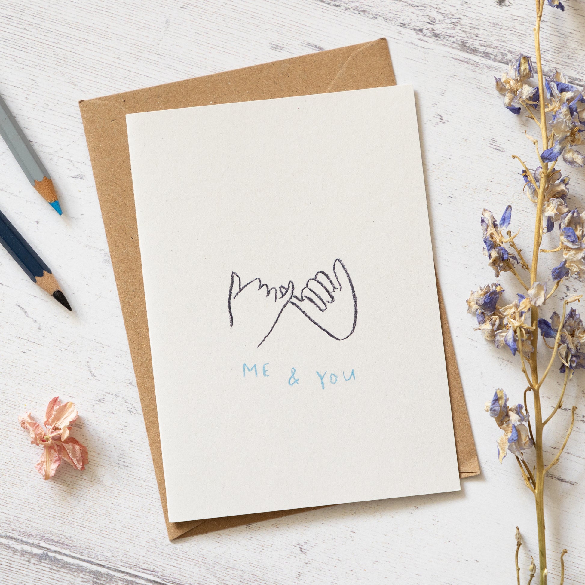A pinky swear – a sweet yet meaningful gesture of trust and love. This greetings card captures that sincerity, making it perfect for any occasion. Whether it’s an anniversary or just an everyday reminder of your bond, this card is a heartfelt way to show you care. Blank inside for your personal message, it’s a versatile and thoughtful choice for someone special.
